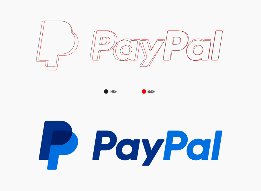 「Paypal」的字标也有显著变化,所有的字体的边角过渡更加流畅,字形结构更加清晰。例如「P」字的字谷空间变大,「a」和「y」等小写字母的字高提升,增强字体的可视性。